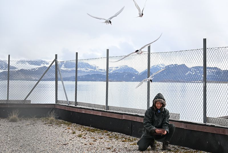 Checking nests of aggressive Arctic terns in Ny-Ålesund, Svalbard